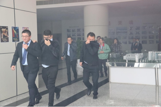 本次演練由公司總經(jīng)理應(yīng)剛擔(dān)任總指揮。演練共設(shè)置了警械疏散組、通訊聯(lián)絡(luò)組、搶修搶險組、物資供應(yīng)組、醫(yī)療救援組五個組。下午2點,各小組準(zhǔn)備完畢后,演練正式開始。根據(jù)演練預(yù)案,公司四樓倉庫發(fā)生了火災(zāi),剎那間煙霧彌漫?;馂?zāi)報警系統(tǒng)的警報聲驟然響起,大樓內(nèi)全體員工聽聞報警聲后迅速切斷電源,在各部門負(fù)責(zé)人的組織下,沿著大樓樓梯向樓下跑去,迅速逃離火場。整個過程井然有序,五分鐘的時間,大樓內(nèi)工作人員全部逃離火災(zāi)現(xiàn)場,接著參加在公司門口空地舉行的滅火演練。