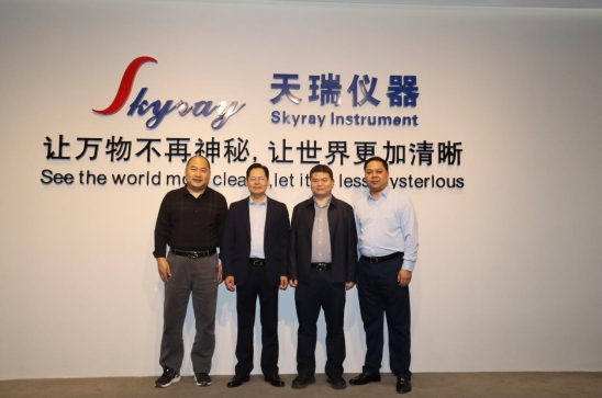 天瑞儀器董事長劉召貴博士對同濟大學環(huán)境科學與工程學院領導及專家學者的到訪表示熱烈歡迎,并帶領大家參觀了天瑞儀器多功能展廳、實驗室及生產線。