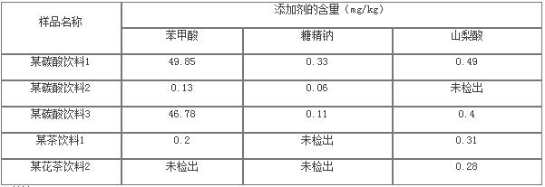表9 汽水及飲料中食品添加劑的檢測(cè)