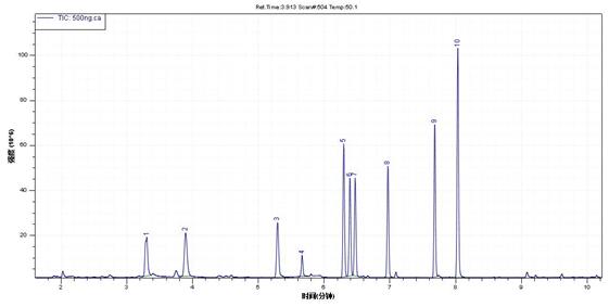 圖3. 某品牌運(yùn)動(dòng)鞋測試總離子流色譜圖