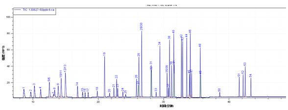 采用GC-MS 6800氣相色譜-質(zhì)譜聯(lián)用儀,測試土壤、沉積物或固體廢物中的多環(huán)芳烴、多氯聯(lián)苯、有機氯農(nóng)藥、揮發(fā)性有機物及鹵代烴類物質(zhì),各物質(zhì)分離效果良好,靈敏度高,線性范圍寬,能達到較好的測試效果。