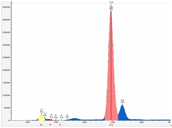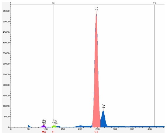 常呈菱面體。遇冷稀鹽酸時會慢慢出泡。有的白云石在陰極射線照射下發(fā)橘紅色光。白云石是組成白云巖和白云質(zhì)灰?guī)r的主要礦物成分。白云石可用于建材、陶瓷、玻璃和耐火材料、化工以及農(nóng)業(yè)、環(huán)保、節(jié)能等領域。主要用作堿性耐火材料和高爐煉鐵的熔劑;生產(chǎn)鈣鎂磷肥和制取硫酸鎂;以及生產(chǎn)玻璃和陶瓷的配料。白云石含量大概為:CaO 30.4%、 MgO 21.9%、 CO2 47.7%。使用EDX3600B對它們進行測試。