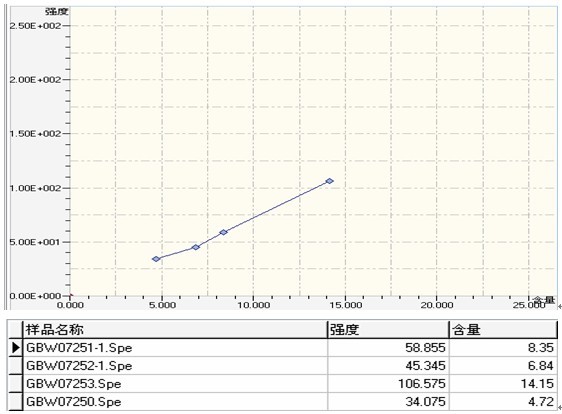 以下使用EDX 3600B型對螢石國標樣GBW07252實際測試的所得的譜圖,工作曲線等相關(guān)數(shù)據(jù):