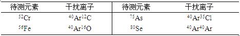 ICP-MS中質(zhì)譜干擾主要為多原子離子干擾,通??刹捎脭?shù)學(xué)干擾校正方程進(jìn)行校正或采用碰撞反應(yīng)功能,消除多原子干擾離子。碰撞反應(yīng)功能是指在質(zhì)譜儀內(nèi)引入碰撞反應(yīng)氣體,使某些多原子干擾離子發(fā)生解離、轉(zhuǎn)移等反應(yīng),降低干擾離子對待測同位素的影響。
